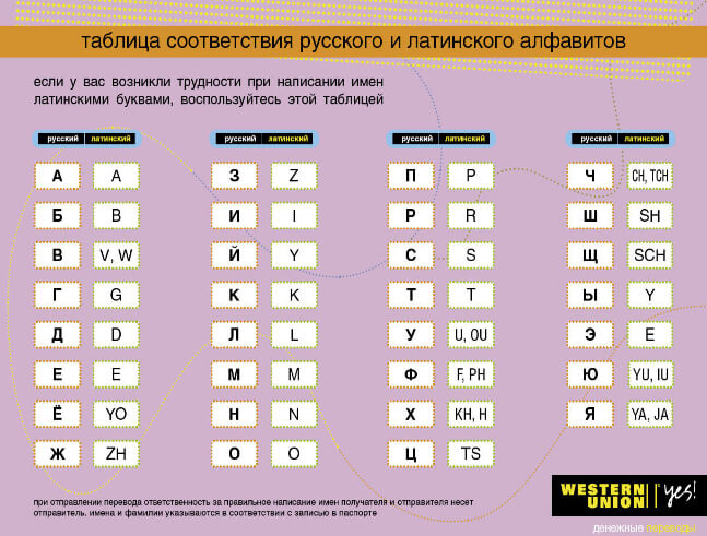 Познакомиться со всеми расценками можно на официальном сайте. Нелишним будет и изучить нюансы. Например, важно правильно написать имя получателя, чтобы оно было полностью идентично тому имени, которое указано в документах, которые он предъявит в местном отделении Western Union. Компания разработала указатель соответствий латиницы и кирилицы.