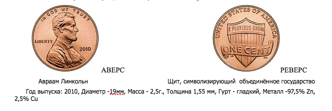 1 цент (1¢) — one cent — еще его называют пени/penny