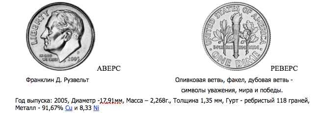 10 центов (10¢) — one dime — еще его называют дайм/dime