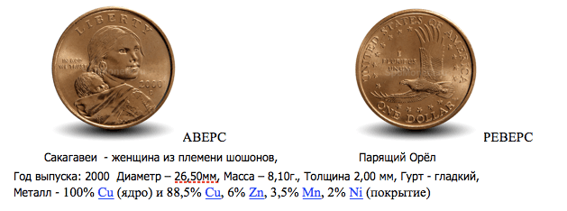 - Ныне чеканятся на Монетном дворе США и находятся в обращении монеты в 1, 5, 10, 25 центов и 1 доллар.
