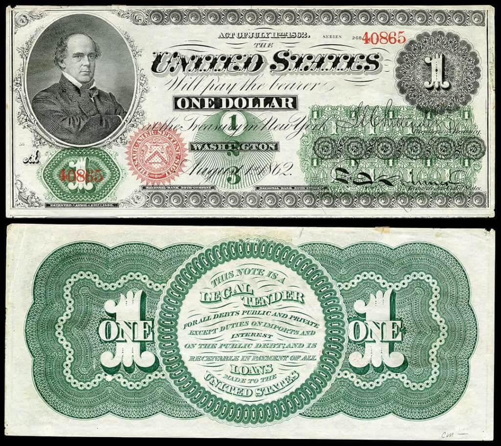 В историю «континентальный доллар» вошел поговоркой: «Эта бумага не стоит тех денег, которые потратили на её печать». Это была самая мощная и обвальная инфляция за всю историю США. Расхлёбывать эту ситуацию пришлось уже на местах, силами местных администраций и их банков. Это были тяжёлые времена. А где они были лёгкими после революций? Но шли годы, и теперь уже объединённая страна начала постепенно расширяться, отстраиваться и развиваться. К первой половине XIX века в США уже чётко обозначились главные экономические районы: промышленный Север и аграрный Юг. Север нуждался в сырье с Юга, особенно в хлопке, а Юг — в машинах Севера. Это позволяло им долгое время мирно сосуществовать. Но постепенно между ними возникли серьёзные экономические и политические противоречия, обострённые неоднозначным отношением к рабству. Это привело к расколу страны и началом гражданской войны, на ведение которой с обеих сторон требовались огромные средства. 17 июля 1861 года Конгресс США принял акт, обязывающий казначейство выпустить новые денежные знаки на огромнейшую по тем временам сумму — 60 миллионов долларов. Учитывая, что купюры были определены номиналами в 5, 10 и 20 долларов, то трудно даже себе представить, сколь велика была эта денежная масса. Банки Южан, или «конфедератов» выполнили аналогичную операцию, но в меньших объёмах. Их деньги постигла та же участь, что и «континентальный доллар», в то время как казначейские билеты времен Гражданской войны (гринбеки) были признаны законным платежным средством после окончания войны. С 1866 года банкноты Национального Банка были обеспечены ценными бумагами правительства США и стали основным видом бумажных денег.