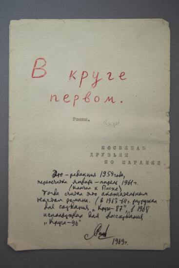 Роман «В круге первом», фрагмент, авторская машинопись А.И. Солженицына. Рязань, 1962 г. Из архива А.И. Солженицына