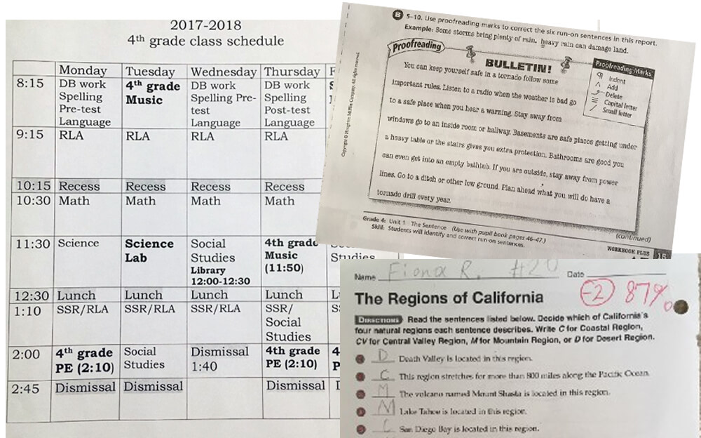 Для интереса прикрепляю некоторые школьные работы и расписание уроков. Вот смотрю на расписание и кажется, что составители знают, что детям по девять лет, и хотят, чтобы школа была радостью, а не скучной обязанностью. Я рада, что мой ребенок учится в этом городе в самой обычной школе.