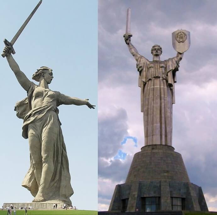 В завершении напомним вам скульптуру Родина-мать зовёт, установленную в России в 1967 г. ( Волгоград), и Родину-мать в Украине (Киев) в 1981 г.