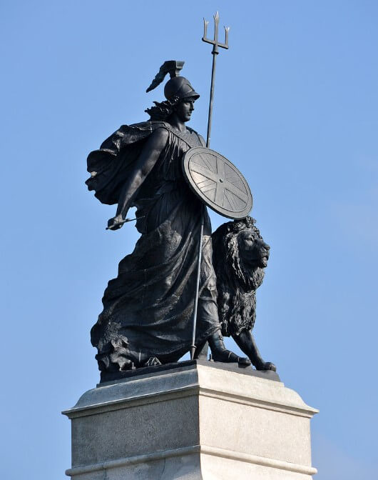Особенно отчётливо это проявилось в Великобритании. Там появился свой национальный флаг – «Union Jack», затем национальный гимн – «Правь, Британия», прославляющий не столько монархию, сколько сообщество, или нацию. А затем и изображение символического образа страны — Леди Британии. Её античное имя, подразумевавшее женский род, было дано стране ещё римлянами. С лёгкой руки королевы Виктории, фигура Британии стала изображаться в шлеме, с трезубцем и щитом в руке, как символ победительницы и основательницы огромной морской державы. И лев, примостивший у ног, словно подтверждал её мощь и значение. На британских монетах она изображается сидящей на колеснице, устремлённая вперёд, в будущее.