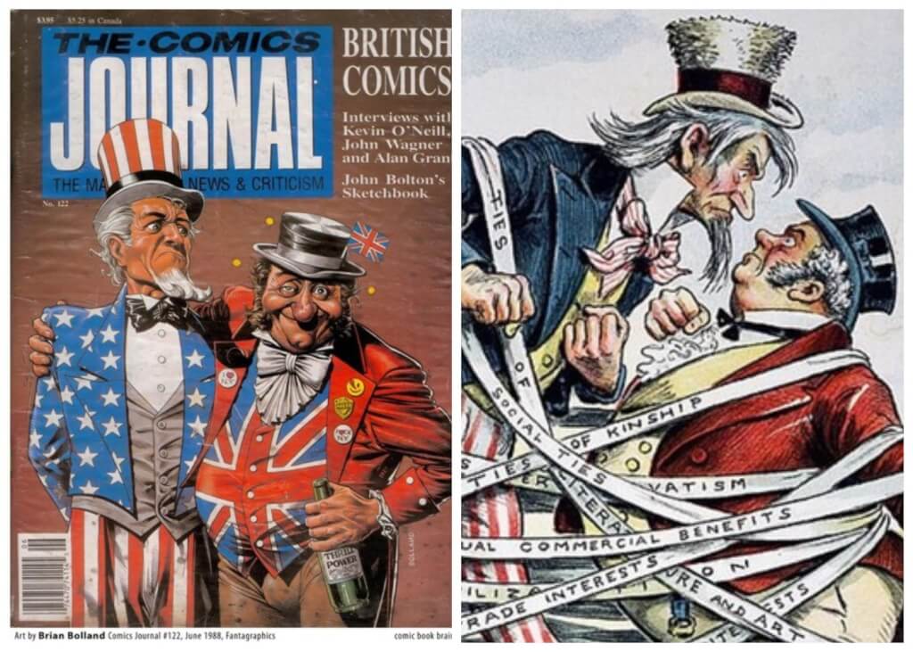 Глядя на эти совместные карикатуры Джона Буля с Дядей Сэмом, создаётся впечатление, что одной из главных задач художников, создающих образ дяди Сэма, был поиск персонажа диаметрально противоположного Джону Булю. Длинный и короткий, худой и толстый, с бородкой и без неё, с длинными растрёпанными волосами и короткой стрижкой. При этом, с высоким и низким цилиндром на голове, и одеждой, включающей национальную символику. Но это не совсем так. Поскольку образ Дяди Сэма рождался не на пустом месте. В него были перенесены часть деталей из образа Брата Джонатана — фольклорного героя, который ассоциировался с Новой Англией, периода времён войны за независимость.
