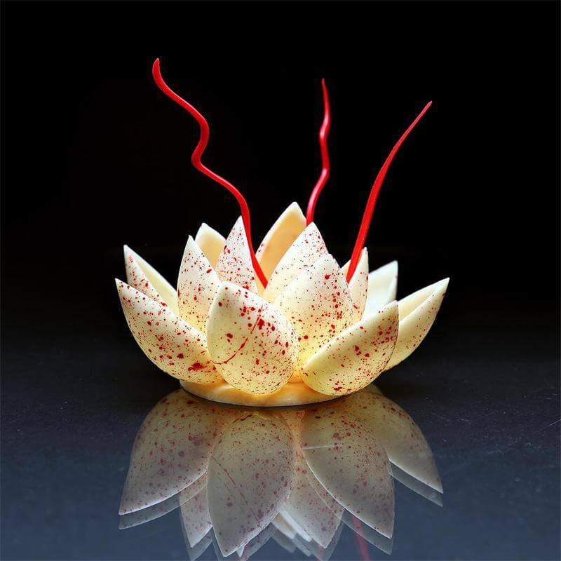 Любимыми предметами Динары в школе были геометрия и химия. Наверное, именно поэтому в своей работе она использует разные методы моделирования форм — такие, как биомимикрия, диаграмма Вороного или триангуляция. А еще кондитер признаётся, что в ее «маленьком цеху» (так она называет свою домашнюю кухню) всегда можно найти инструменты из строительного магазина: краскопульты, разные линейки, пирометры и даже канализационные трубы, которые помогают сделать изящный завиток из шоколада.