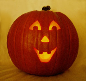Главным символом Хэллоуина является так называемый Светильник Джека. Он представляет собой тыкву, в которой вырезано зловеще усмехающееся лицо; внутрь тыквы помещается зажженная свеча.