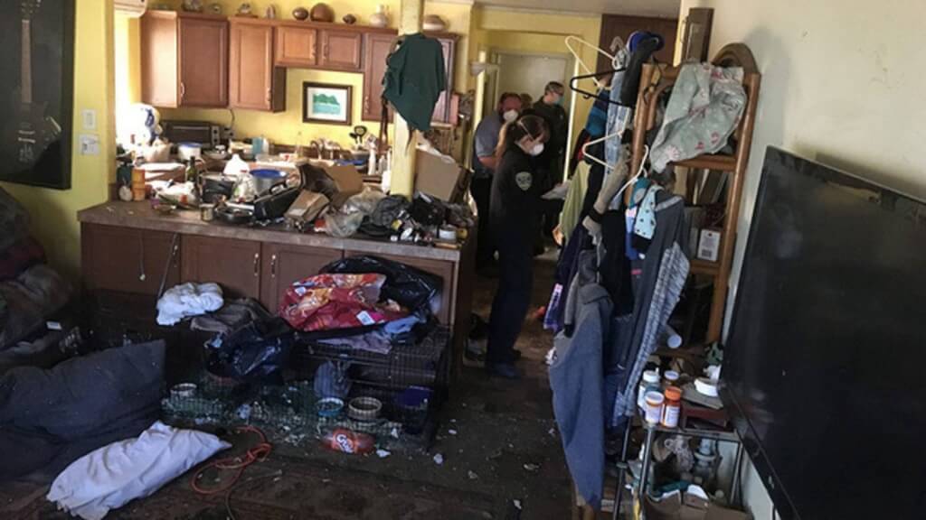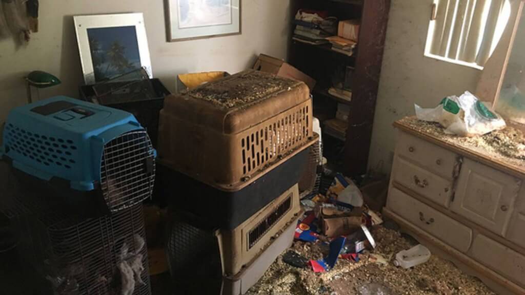 Когда на следующий день полицейские вернулись к дому, они обнаружили «огромное количество фекалий животных и мочи» по всему дому, пол и столешницы были завалены мусором. Восемь собак, два кролика, кошка, попугай и 55 домашних крыс были вывезены из дома.
