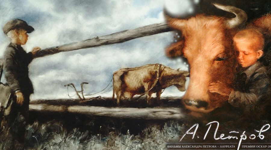 Анимационный фильм «Корова» — это экранизация рассказа Андрея Платонова, в котором писатель исследует чувства мальчика, впервые узнавшего, что такое смерть близкого существа. Поразительная работа мультипликатора Александра Петрова невероятно тонко передает страхи и фантазии ребенка, а потому была в 1990 году заслуженно отмечена номинацией в категории «Лучший короткометражный анимационный фильм».