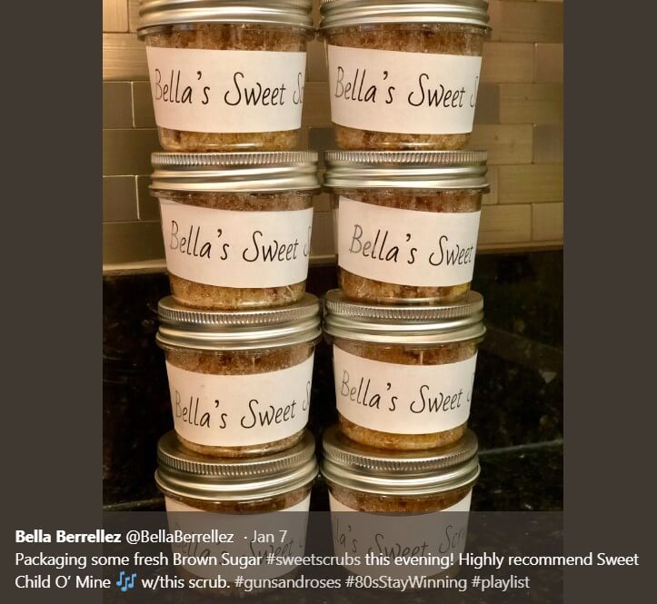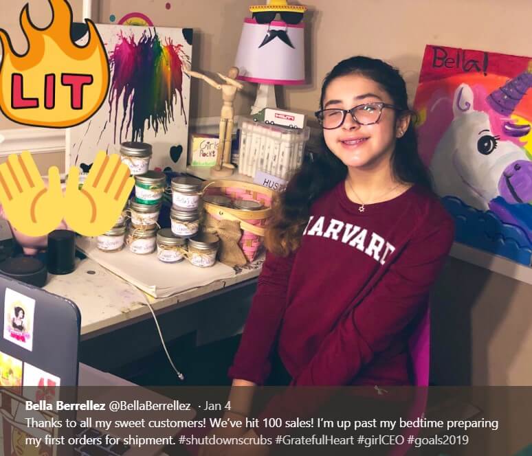 Белла запустила проект Bella Sweet Scrubs, готовя скрабы по рецепту, который придумала и опробовала вместе с мамой. Девочка начала с продажи скрабов соседям и друзьям, и теперь у нее есть собственный магазин, откуда она отправляет косметическое средство клиентам по всей стране.
