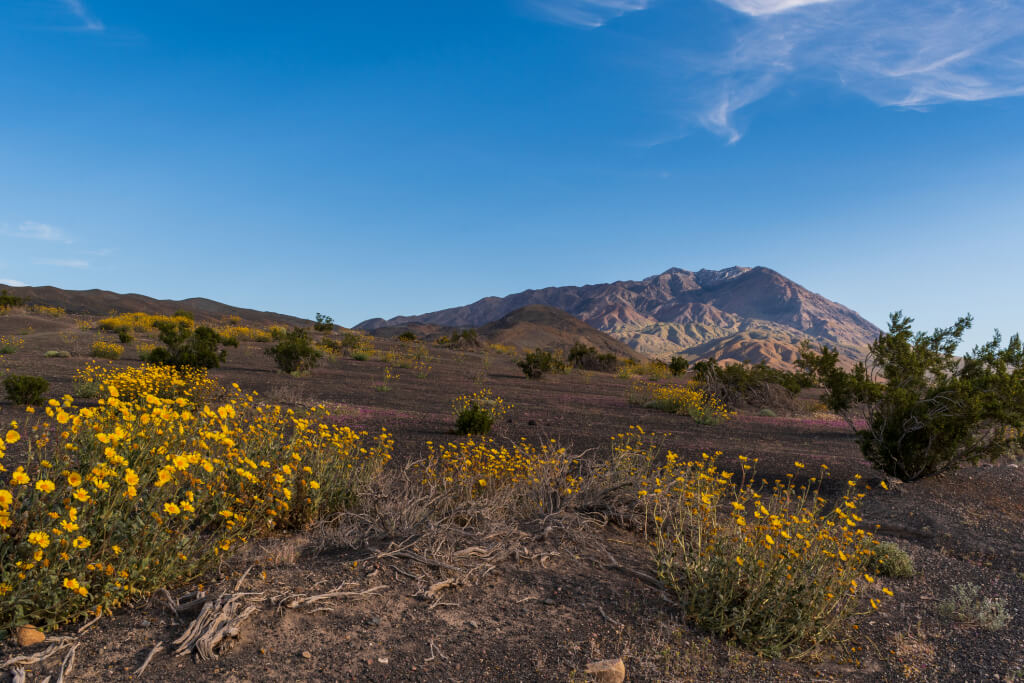 Семена цветов в Долине Смерти десятилетиями могут лежать в земле, дожидаясь зимних дождей и теплой весны. Сейчас в низинах цветение в самом разгаре и продержится до середины — конца марта. На высотах всё начнётся позже — в апреле–июне, но уже не так обильно.