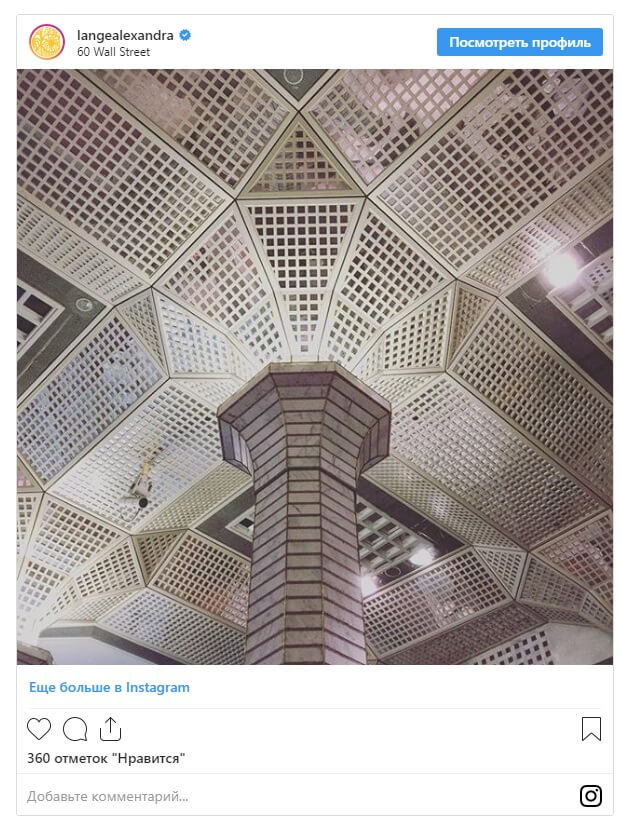 Одно из самых уникальных частных общественных мест города можно найти по адресу: 60 Уолл-стрит, спроектированное Кевином Рошом Джоном Динкелоо и партнерами в 1989 году. Восхитительное постмодернистское пространство наполнено пальмами, колоннами и множеством мест, где приятно посидеть.