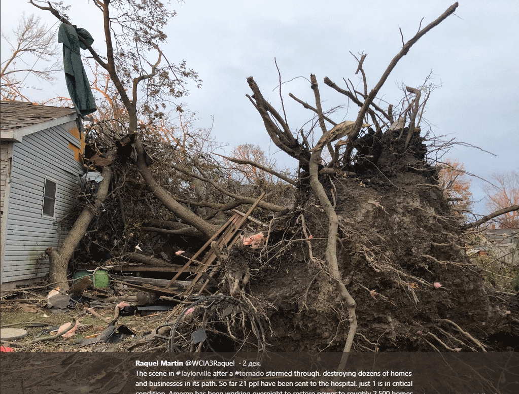 Центральная часть штата Иллинойс пытается оправиться от редкой вспышки торнадо, которая произошла в субботу, когда Национальная служба погоды предупредила о 22 вихрях, пишет CNN.