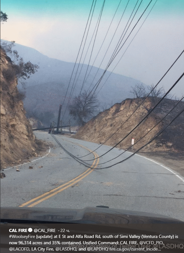 • Woolsey Fire: 57 000 зданий по-прежнему находятся под угрозой Woolsey Fire в Южной Калифорнии. Пламя выжгло 97114 акров.