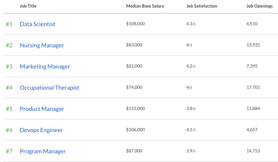 Сайт по трудоустройству Glassdoor составил список лучших должностей в США в 2019 году.