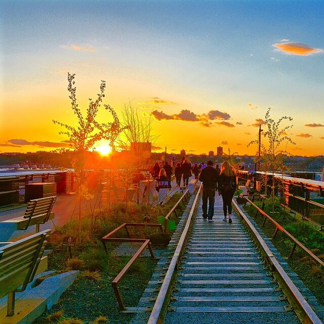 Как насчет пообедать на высоте 10 метров от поверхности земли?! Парк в Манхэттене находится на месте надземной железной дороги, которая была закрыта и трансформирована в парковую аллею, по аналогии с парком в Париже.