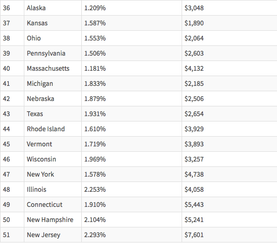 - Средняя ставка налога на недвижимость: 0,619% от оценочной стоимости жилья