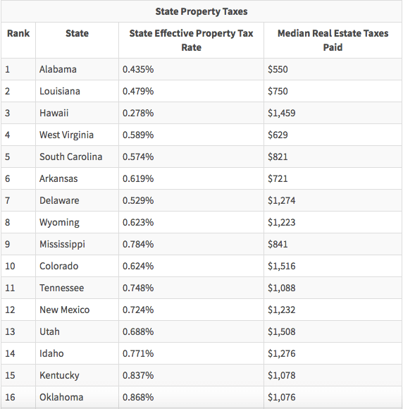 Если отталкиваться от средней ставки налога на недвижимость в штате и средней суммы, выплачиваемой ежегодно в виде этого налога жителями региона, то следующие 7 штатов имеют самые низкие налоги на недвижимость.