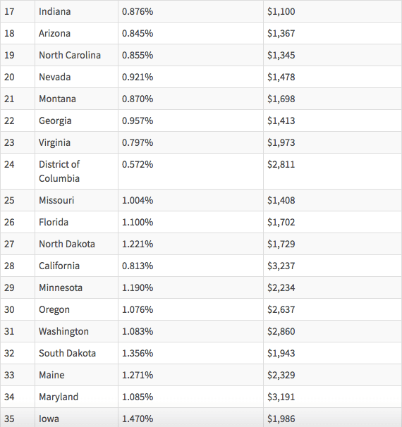 - Средняя ставка налога на недвижимость: 0,619% от оценочной стоимости жилья
