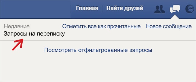 Мало кто знает, что в Фейсбуке есть два почтовых ящика. Один из них предназначен для сообщений от людей, не являющихся вашими друзьями в фейсбуке. Если вы не знали о втором почтовом ящике, то вы, скорее всего, пропустили приглашения на различные мероприятия от друзей ваших друзей или предложения о встрече от бывших коллег по работе. Чтобы прочесть эти сообщения, вам необходимо кликнуть на иконку «Сообщения», затем нажать на кнопку «Запросы на переписку» и выполнить команду «Посмотреть отфильтрованные запросы».