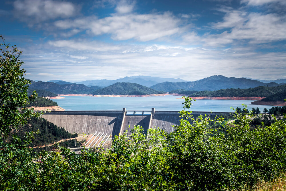 Shasta Dam — это изогнутая гравитационная плотина, расположенная через реку Сакраменто и озеро Шаста. Плотина имеет высоту около 600 футов (182,8 м), что делает ее девятой самой высокой плотиной во всей стране. Она также формирует самый большой водный резервуар в Калифорнии. Наиболее известен тем, что он играл важную роль во время Второй мировой войны, когда он использовался для снабжения электроэнергией многих калифорнийских заводов.