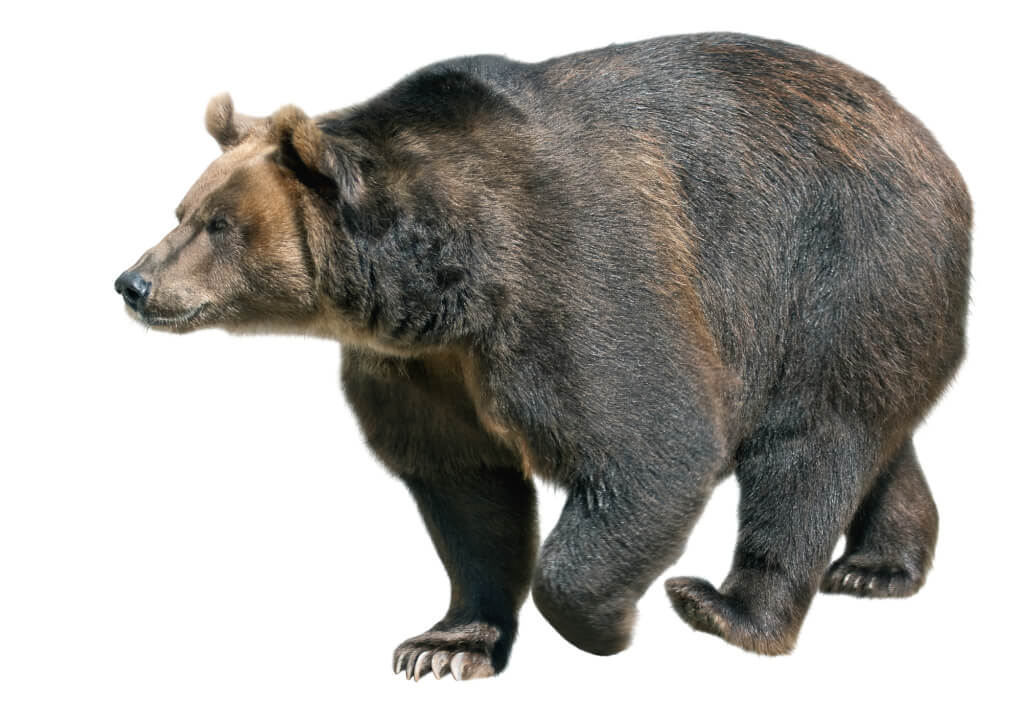 Взрослые самцы бурых медведей обычно весят от 270 до 410 килограммов в середине лета. К тому времени, когда они готовы впасть в спячку, наевшись лососями и нагуляв жир — каждый съедает до 30 рыб в день — крупные самцы могут весить более 454 килограммов. Самки примерно на треть меньше самцов.