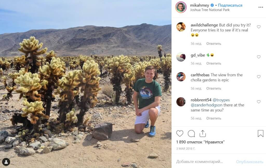 «Подводя итог, хочу сказать, что вы можете смотреть на самые красивые места Америки, но они не тронут вас так, как если бы вы смотрели на них вместе с дорогим вашему сердцу человеком, — говорит Майка. — Я чувствую, что порадовал папу и отдал дань уважения, усвоив этот самый урок».