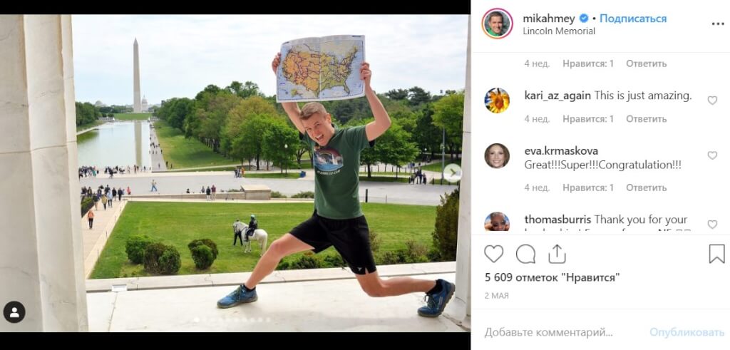 «Я выбрал мемориал Линкольна, потому что хотел, чтобы в этот момент я смог оглянуться назад, туда, где я начал свой путь, — рассказывает Майка. — Я родом из городка Линкольн в штате Небраска, поэтому это место символично вдвойне».