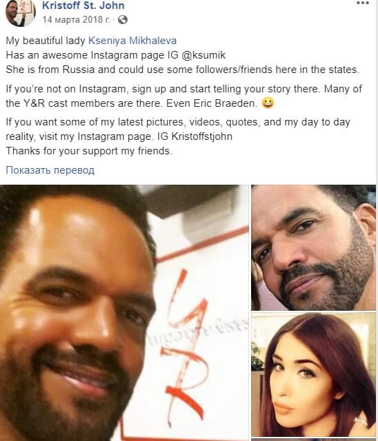 Актер Кристофф Сент-Джон, наиболее известный своей ролью в многолетней мыльной опере «Молодые и беспокойные» (The Young and The Restless) был найден мертвым в своем доме в Лос-Анджелесе. Ему было 52 года. У актера остались две дочери и невеста — русская модель Ксения Михалева, с которой он был обручен и собирался сыграть свадьбу в 2019 году.