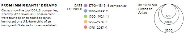 Перечень варьируется от новаторов, таких как Apple и Amazon, до финансовых лидеров, таких как AT & T и Procter & Gamble. Экономика США предоставила возможности — как иммигрантам, так и неиммигрантам — создавать компании, предоставляющие новые услуги, продукты и собственное видение будущего.