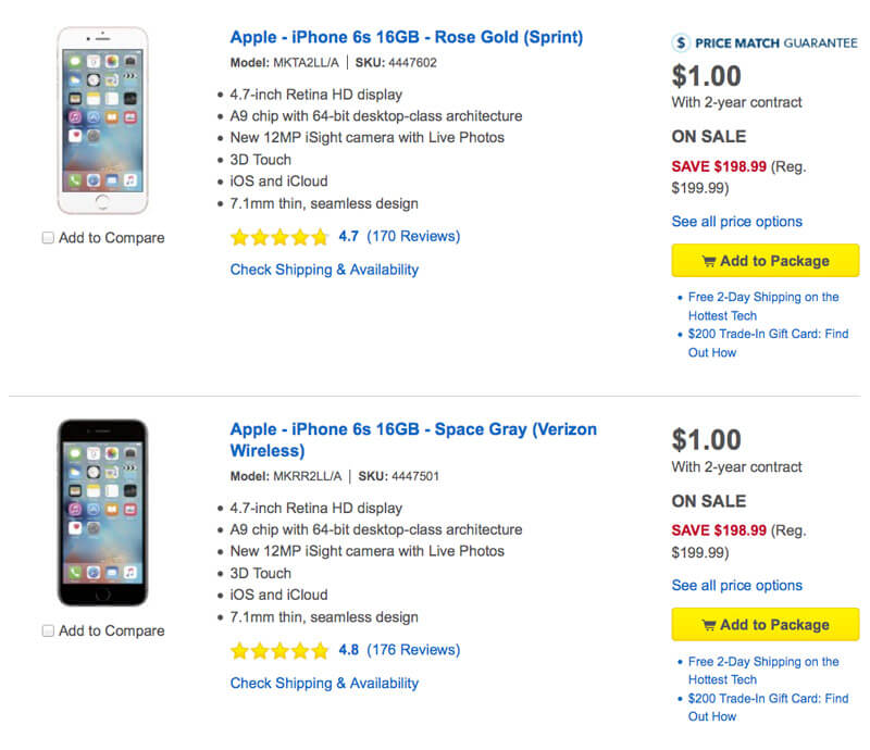 iPhone 6s с 16 ГБ памяти также доступен со скидкой у операторов Verizon и Sprint. Аппарат продается по цене 99 долларов.
