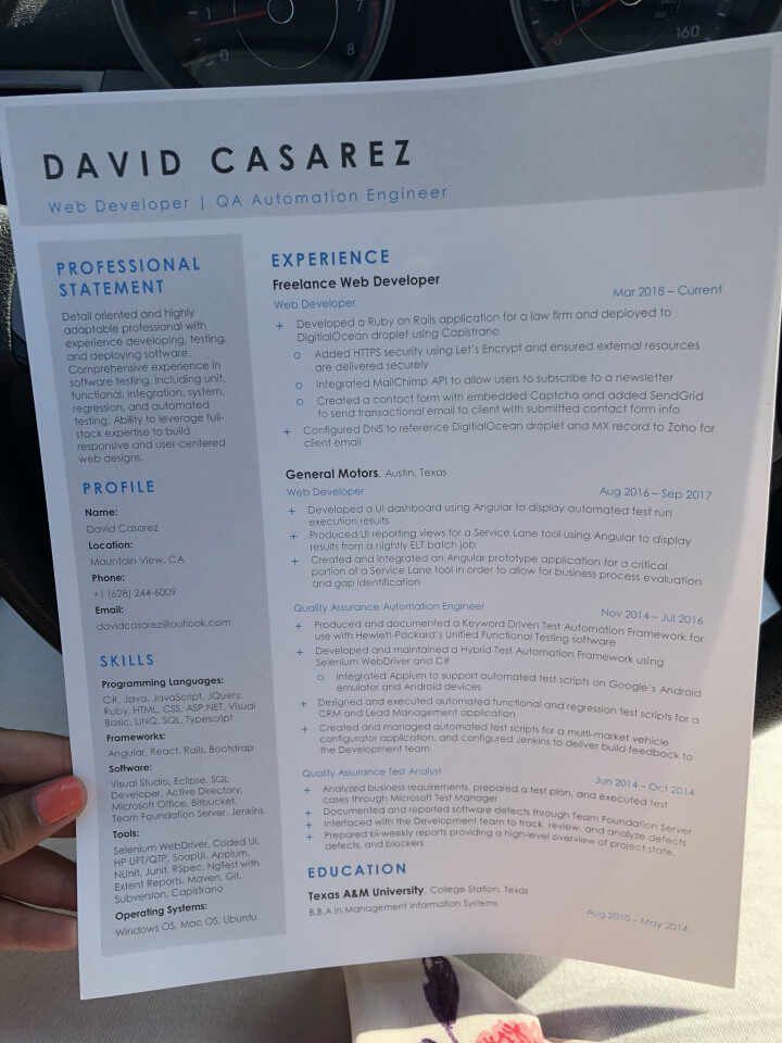 Он получил степень бакалавра в области информационных систем управления в Техасском университете A & M, имел хорошую работу веб-разработчика в General Motors в Остине, но затем обналичил свой 401 (k) и поехал в Силиконовую долину за мечтой о собственном технологическом запуске — только в июне у него уже не было денег.