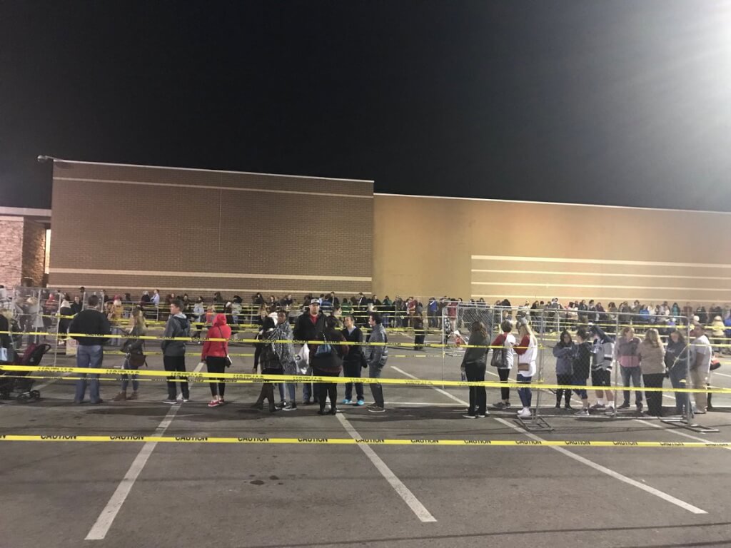 В Mall of America в Миннеаполисе, штат Миннесота более 2500 человек выстроились в аккуратную очередь в ожидании открытия дверей магазина в 5 утра. Еще один лагерь люди разбили у дверей Walmart в Массачусетсе. Магазин откроется в 1:00 и будет работать до 23:00.