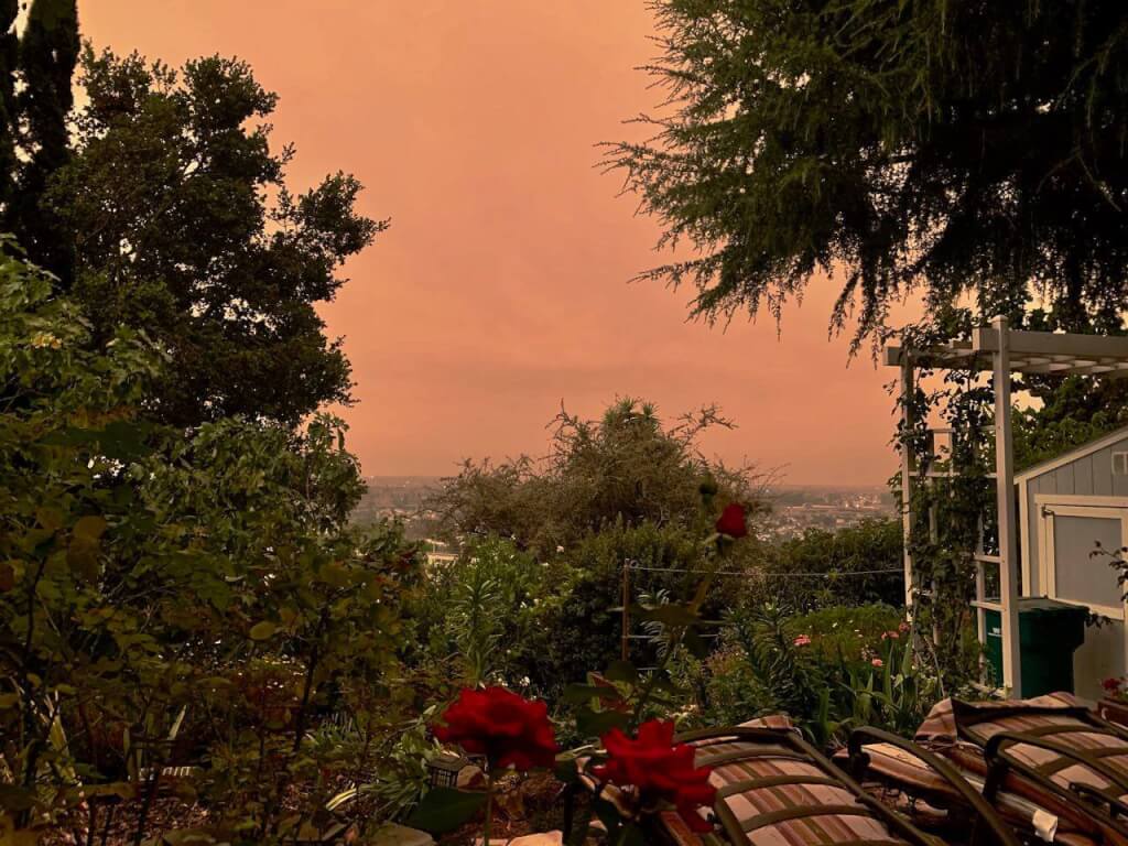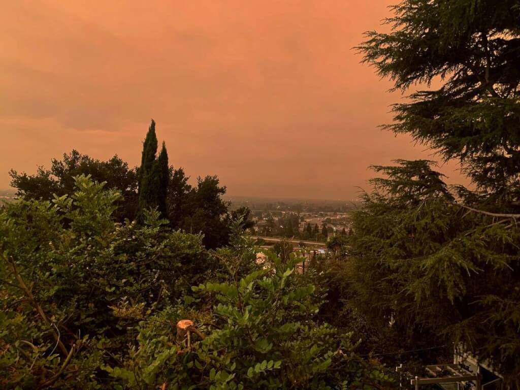 Оранжевое и даже красное небо накрыло Сан-Франциско, Окленд и Беркли, в воздухе летал пепел, а вдали бушевали лесные пожары.