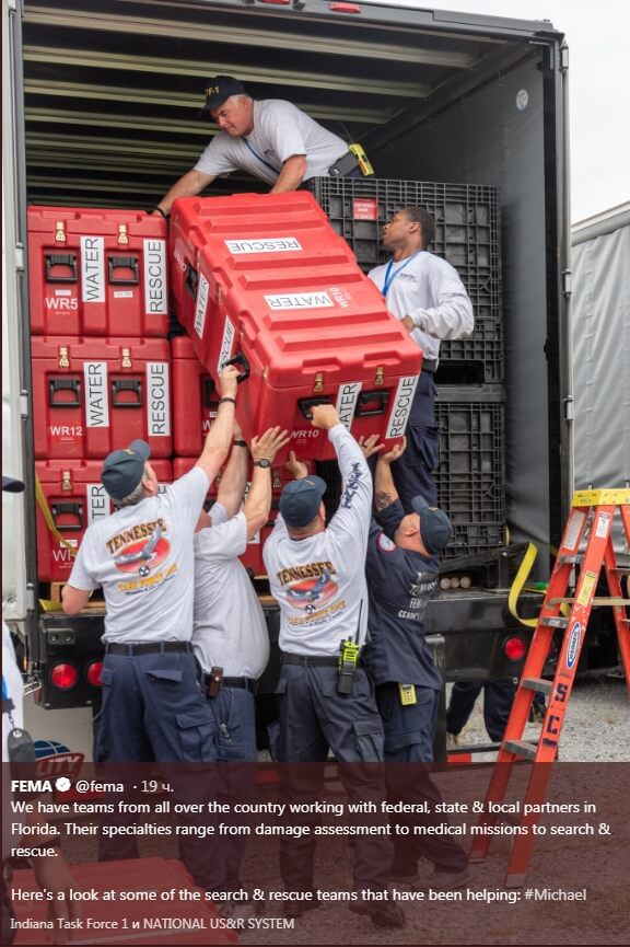 «Наши мысли и молитвы с теми, кто только что пережил один из самых разрушительных ураганов, который эта страна видела с 1851 года, — сказал журналистам Брок Лонг, глава Федерального агентства по управлению чрезвычайными ситуациями, при координации помощи в Вашингтоне. — Будьте уверены, что я не только делаю все, что могу, но преданный своему делу персонал FEMA делает все возможное, чтобы как можно быстрее облегчить боль и страдания».