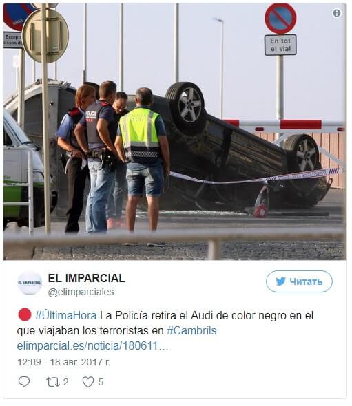 Пятеро из террористов были убиты в Камбрилсе. Правоохранительные органы связали теракт в Барселоне с наездом на пешеходов в Камбрильсе в ночь на 18 августа и взрывом в испанском городе Альканаре в ночь на 17 августа.