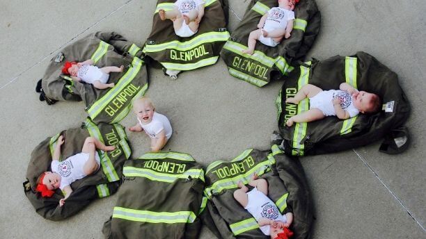 Менее чем за год 7 из 20 пожарных в Glenpool Fire Department в Оклахоме стали отцами. Жена одного из пожарных предложила сделать совместное фото. Правда, им пришлось подождать, пока не родится последний ребенок.