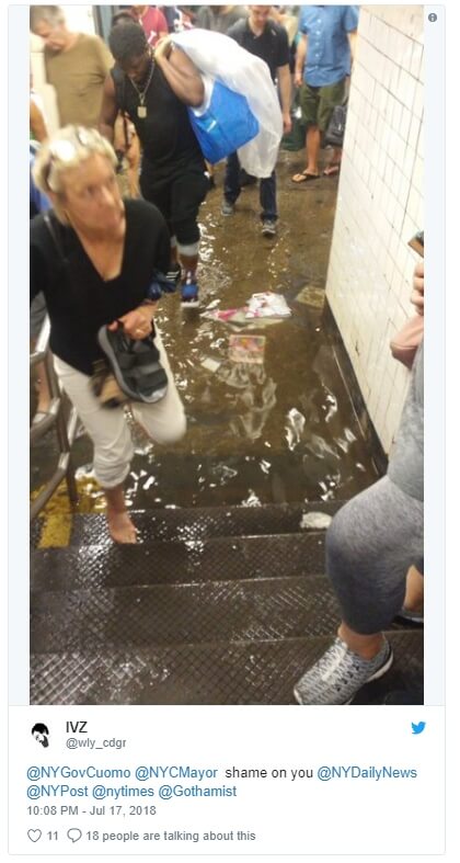 Update: stuck at QBP on the N train. There is a river forming in the car 8745. Good times @NYCTSubway #Stormin pic.twitter.com/KjHQf4pJvd