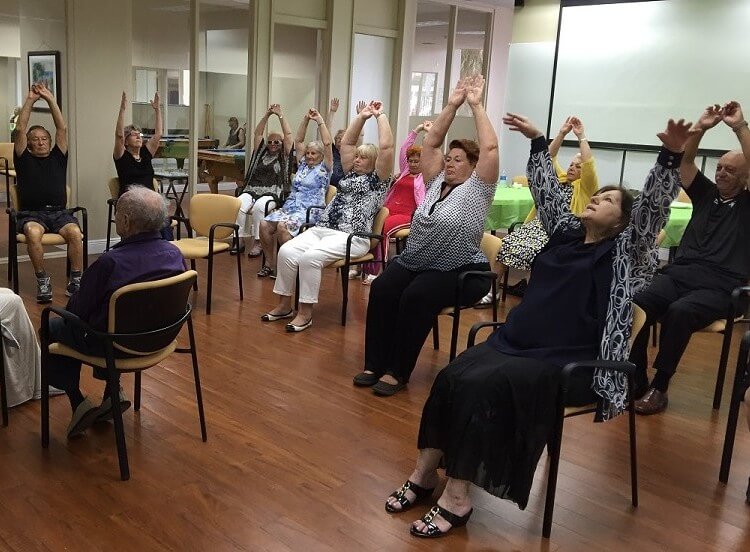 Сразу попадаю на утреннюю разминку. В зале 18 человек, есть несколько супружеских пар. Лариса просит повторять за ней различные упражнения – как не самые сложные, с учетом возраста, физические, так и упражнения на концентрацию, мозговую активность и развитие памяти.