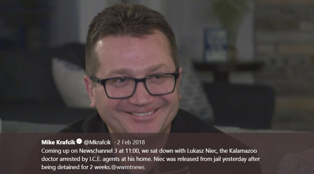Доктора, уроженца Польши, Лукаша Ница который около 40 лет живет в США и был арестован американской иммиграционной и таможенной службой (ICE), выпустили под залог в размере $10 тысяч. Об этом пишет Mlive.