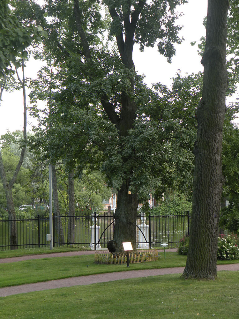 Коль мы уже добрались до территории бывшего Советского Союза, то непременно следует побывать в Петергофе, на Царицыном острове Ольгиного пруда. Там, за небольшим ограждением, мы обнаружим дуб, перед которым размещена мемориальная доска, с вынесенным на неё текстом письма, адресованного русскому императору Николаю I. Дело в том, что в 1838 году ему был передан пакет с жёлудем и письмом, в котором сообщалось, что «вложенный желудь снят с дуба, осеняющего могилу незабвенного Вашингтона, и преподнесен в знак величайшего уважения Его Величеству Императору Всероссийскому». Император был растроган, и принял молодого американца Джорджа Самнера, который страстно желая каким либо образом попасть на аудиенцию к императору, придумал преподнести ему именно такой подарок. И попал в точку. Николай I превосходно относился к Вашингтону и велел немедленно высадить этот жёлудь, в знак дружбы и признательности к стране и её великому президенту. России и Америке тогда нечего было делить: у них был общий враг – Англия. На всякий случай, Самнер захватил ещё один жёлудь. Кто знает, а вдруг первый не приживётся. Но он прижился, и радует ныне всех гостей Петергофа. Они спешат сюда, чтобы увидеть в русском парке это удивительное дерево — Дуб Вашингтона.