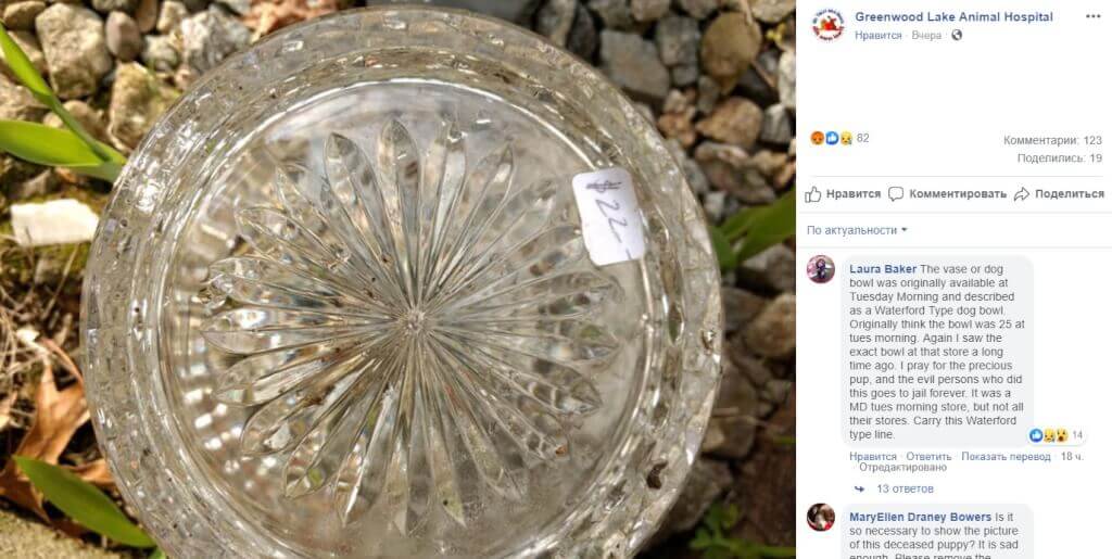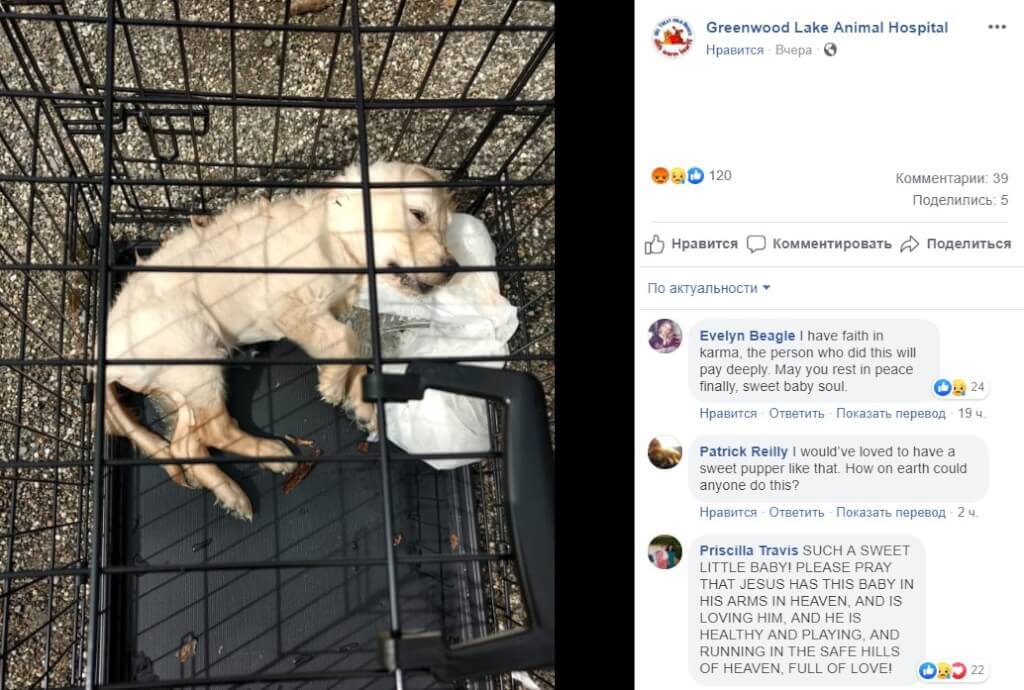 Напомним, что в одном из прудов в Нью-Джерси обнаружили труп 10-недельного щенка лабрадора — собаку посадили в клетку, куда положили тяжелую хрустальную вазу, чтобы сделать конструкцию тяжелее и не позволить всплыть.