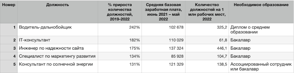 It is interesting to note that with this ranking, most jobs do not require a degree, but only an associate's or bachelor's degree. Solar consultants ranked fourth on this list earn an average of $121 per year and require an associate's or bachelor's degree. For this reason, the profession of a solar energy consultant can be a good choice for those who want a stable job and a good income, but wish to save money on their education.