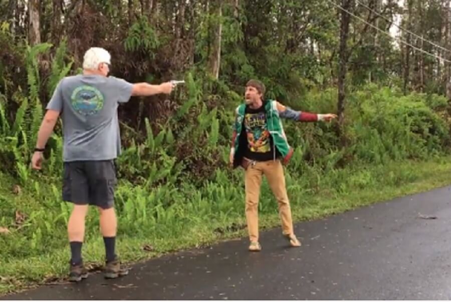 Женщина, которая эвакуировалась на Гавайях из-за извергающегося вулкана Килауэа, рассказала, что ей удалось снять на видео разгневанного соседа, который угрожал выстрелить в голову человеку возле лавы.