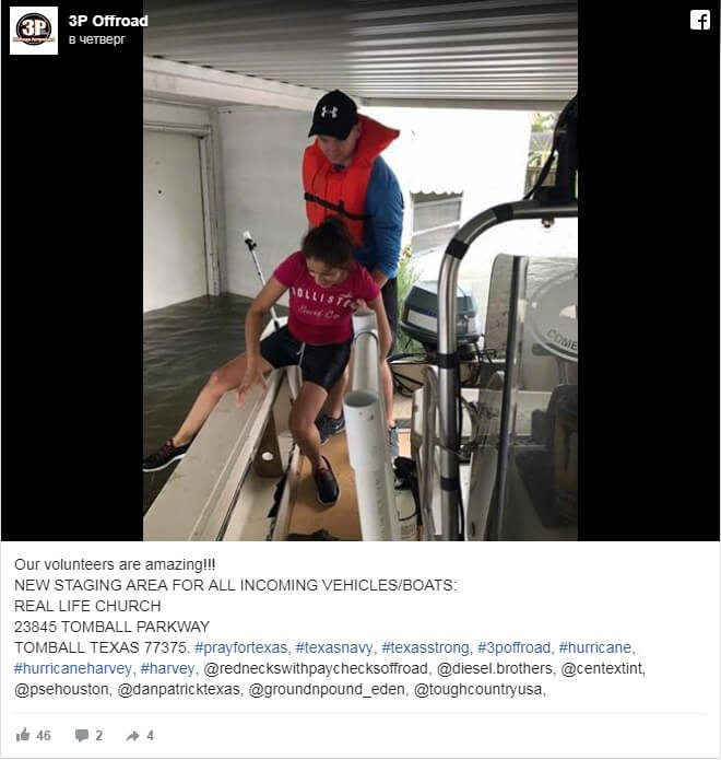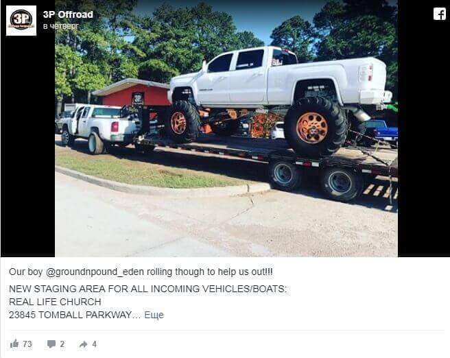 На одном из видео видно, как одна из таких машин вытягивает из воды застрявшую технику Национальной гвардии США, ведь в некоторых местах выпало 76 см осадков, а трассы превратились в океан.