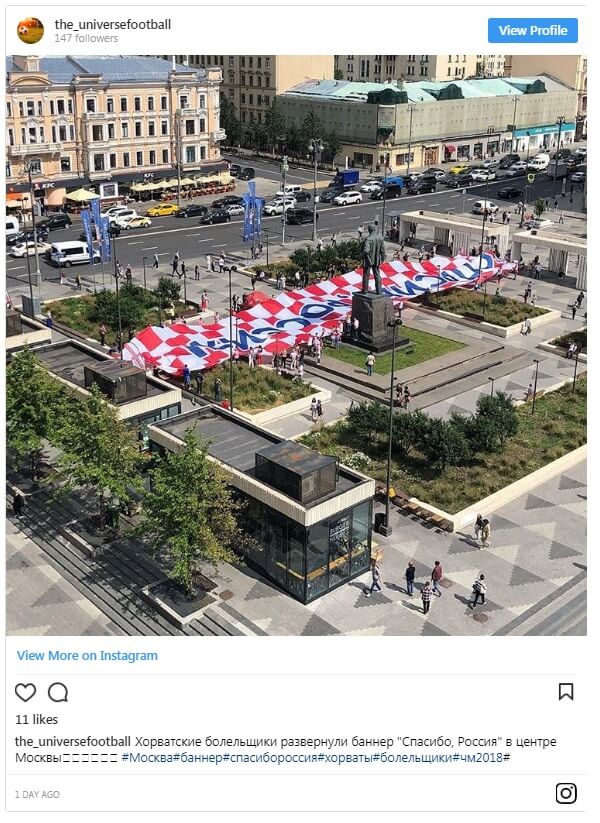 Накануне в Москве на Триумфальной площади хорватские болельщики развернули огромное полотно в цветах национального флага со словами «Спасибо, Россия!». Они заявили, что их акция не связана с высказываниями Виды.
