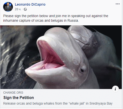 Леонардо Ди Каприо потребовал освободить косаток и белух в России