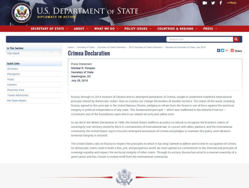 Госдеп США выпустил ‘Крымскую декларацию’: о чем речь и реакция мира