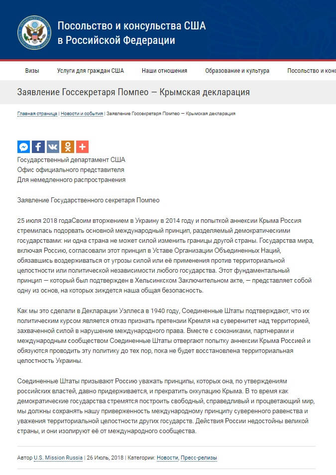 Полный перевод декларации опубликован на сайте посольства США в России.